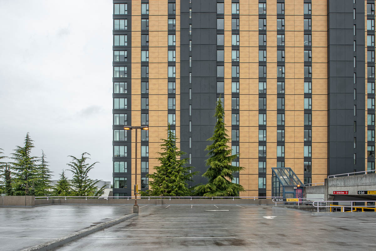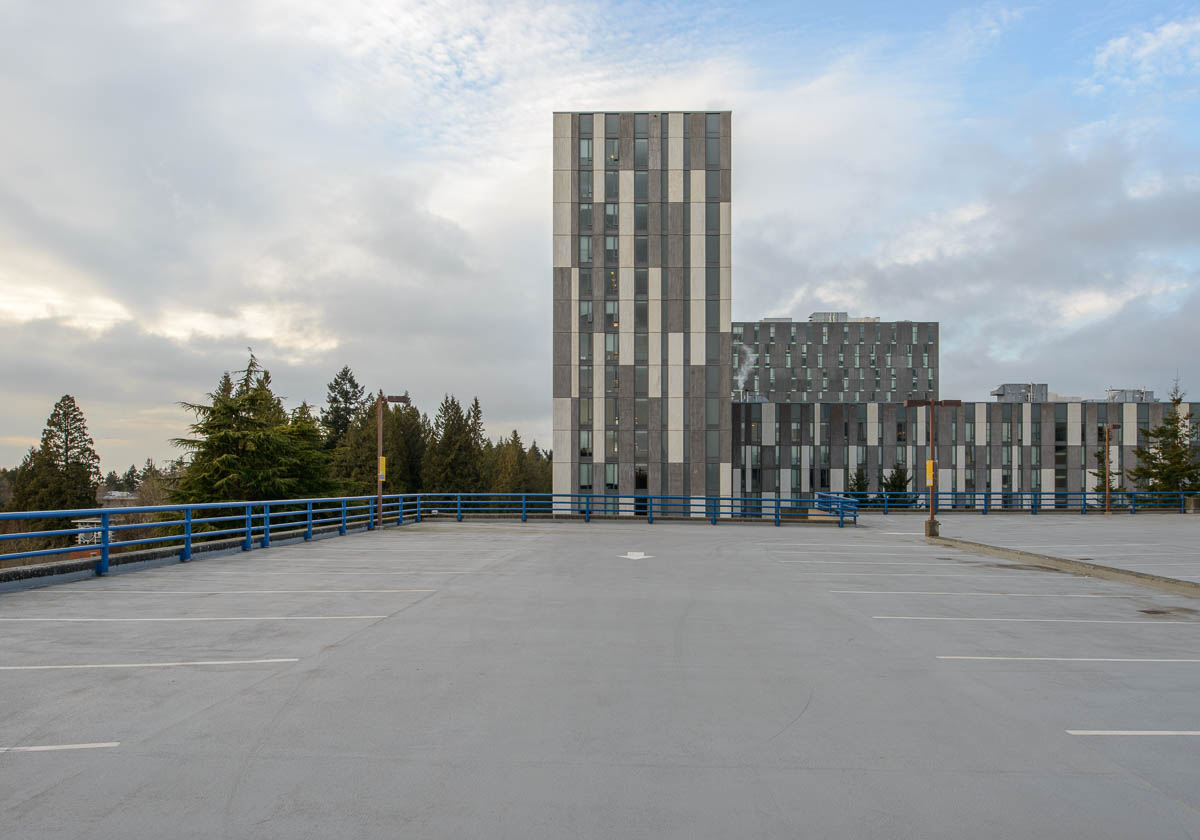 - April 28th, 2021 — Brock Commons Tallwood House Student Residence 6088 Walter Gage Road from the north parkade.