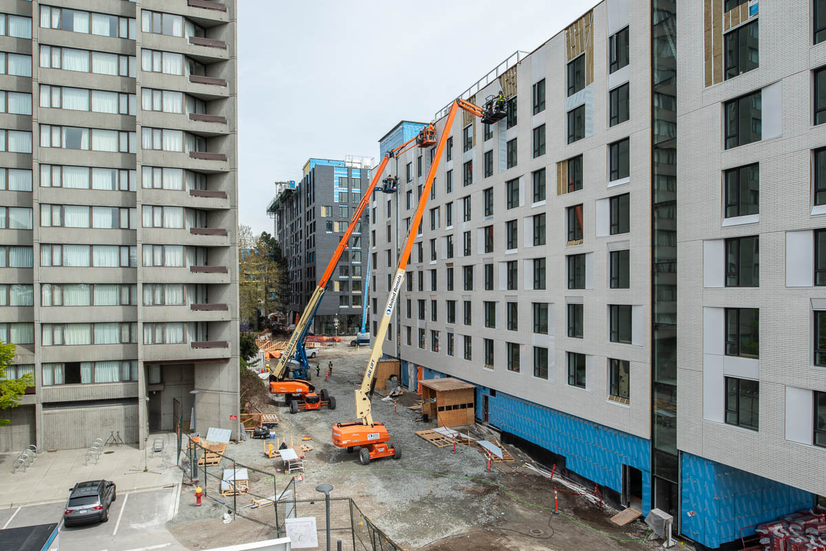 - May 8th, 2021 — Six story building made from wood on Wesbrook Mall at Gray Avenue, to be used as a residence for UBC staff and faculty.